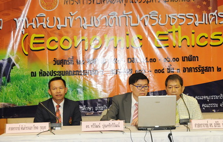 (26 เม.ย.) ที่อาคารรัฐสภา 2 คณะกรรมาธิการด้านศาสนา คุณธรรม จริยธรรม ศิลปะและวัฒนธรรม วุฒิสภา จัดเสวนาเรื่อง "ทุนนิยมข้ามชาติกับจริยธรรมเศรษฐกิจ"