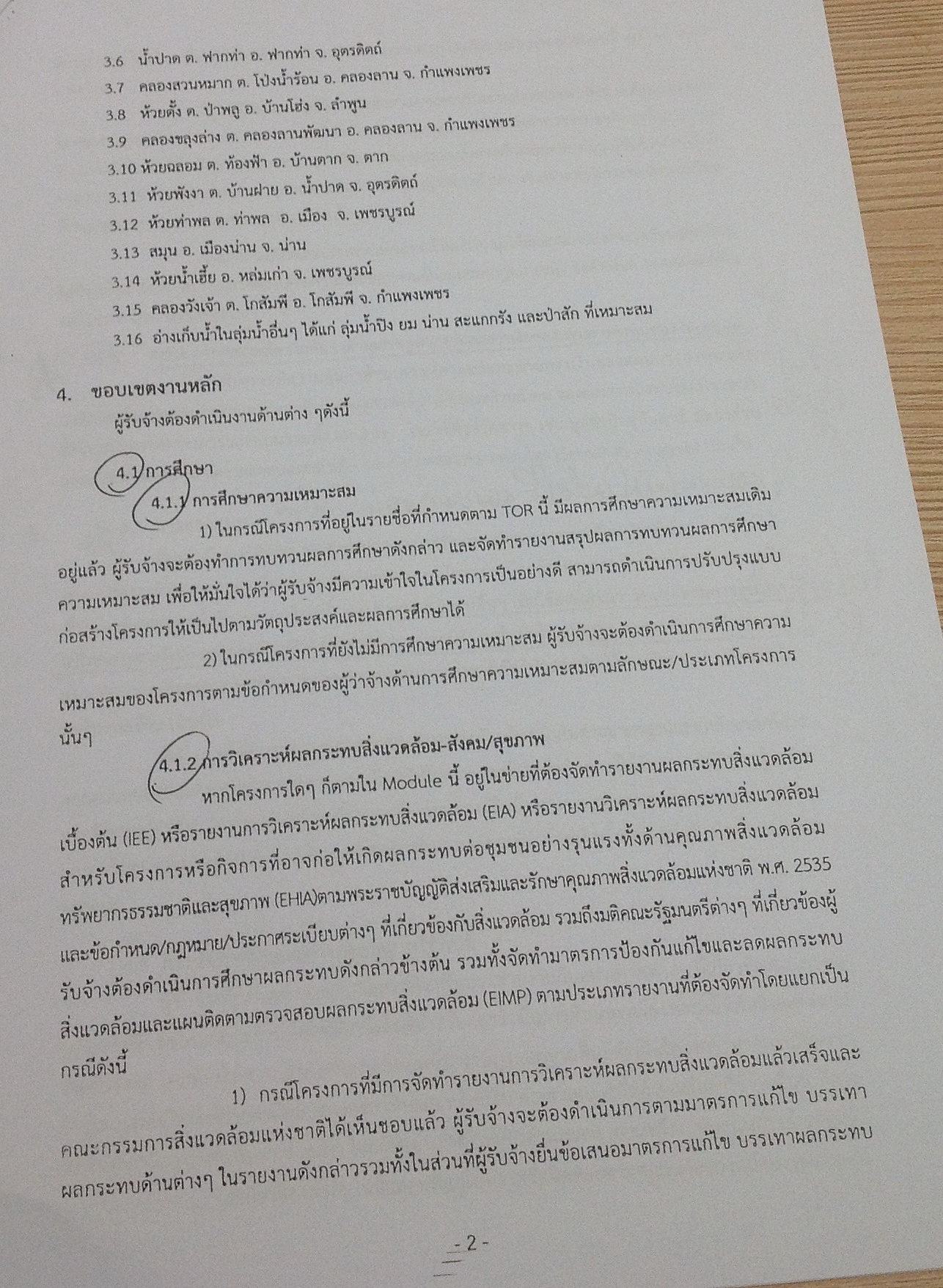 ประการที่หนึ่ง (ตามข้อ 4.1) การทำการศึกษา โดยทำการศึกษาถึงความเหมาะสมของโครงการ การวิเคราะห์ผลกระทบสิ่งแวดล้อม สังคม สุขภาพ ซึ่งอาจก่อให้เกิดผลกระทบต่อชุมชนอย่างร้ายแรง ในกรณีที่หากโครงการใดๆ ก็ตามในโมดูลนี้อยู่ในข่ายที่ต้องจัดทำรายการผลกระทบสิ่งแวดล้อมเบื้องต้น (IEE) หรือรายงานการวิเคราะห์ผลกระทบสิ่งแวดล้อม (EIA) หรือรายงานวิเคราะห์ผลกระทบสิ่งแวดล้อมสำหรับโครงการหรือกิจการที่อาจก่อให้เกิดผลกระทบต่อชุมชนอย่างรุนแรง ทั้งด้านคุณภาพสิ่งแวดล้อม ทรัพยากรธรรมชาติและสุขภาพ (EHA) ตามพ.ร.บ.สิ่งแวดล้อม 2535 และข้อกำหนดหรือกฎหมายหรือประกาศระเบียบต่างๆ ที่เกี่ยวข้อกับสิ่งแวดล้อม รวมถึงมติคณะรัฐมนตรีต่างๆ ที่เกี่ยวข้องผู้รับจ้างต้องดำเนินการศึกษาผลกระทบดังกล่าวข้างต้น รวมทั้งต้องจัดทำมาตรฐานป้องกันแก้ไขและลดผลกระทบสิ่งแวดล้อม และแผนติดตามตรวจสอบผลกระทบสิ่งแวดล้อม (EIMP) ทั้งนี้แผนการแก้ไขและบรรเทาผลกระทบด้านต่างๆ มุ่งให้มีผลกระทบต่อสิ่งแวดล้อมและสังคมให้น้อยที่สุด และเมื่อทำการศึกษาแล้วเสร็จต้องได้รับความเห็นชอบตามขั้นตอนของกฎหมายแล้วจึงดำเนินการตามแผนแก้ไขและบรรเทาผลกระทบด้านต่างๆ