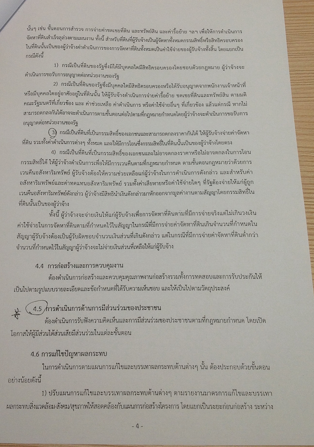 “กรณีที่ดินเป็นกรรมสิทธิ์ของเอกชนและสามารถตกลงราคากันได้ ให้ผู้รับจ้างจ่ายค่าจัดหาที่ดิน รวมทั้งค่าดำเนินการต่างๆ ทั้งหมด และให้มีการโอนซึ่งกรรมสิทธิ์ในที่ดินนั้น เป็นของผู้ว่าจ้างโดยตรง”