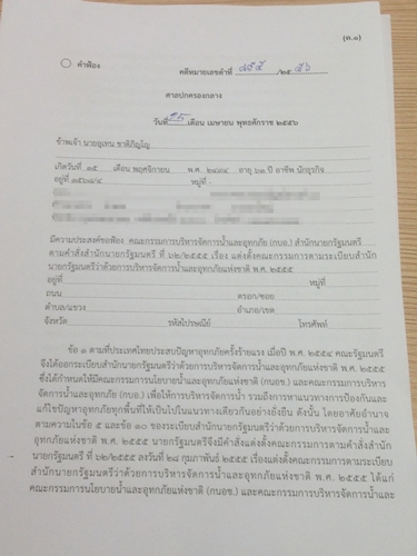 คำฟ้องยื่นศาลปกครอง