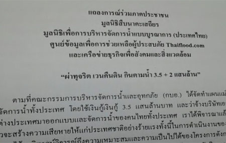 เครือข่ายภาคประชาชน จับมือออกแถลงการณ์คัดค้านแผนบริหารจัดการน้ำ กบอ. ย้ำชัดพบมีความคลุมเครือ ช่องโหว่เพียบ เอื้อนักการเมือง ข้าราชการ บริษัทผู้รับเหมาอย่างมโหฬาร