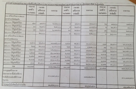 3.2 ประกาศประกวดราคาด้วยวิธีการทางอิเล็กทรอนิกส์ เลขที่ E 61/2556 ลงวันที่ 29 มีนาคม 2556 จัดซื้อจำนวน 11,097 เครื่อง คำนวณตามราคามาตรฐานครุภัณฑ์ที่กำหนดไว้ได้เป็นจำนวนเงินเท่ากับ 384,007,800 บาท แต่ราคาสูงสุดของการประกวดราคาซื้อด้วยวิธีการทางอิเล็กทรอนิกส์ที่กำหนดไว้เทากับ 397,324,200 บาท สูงกว่าคิดเป็นจำนวนเงินเท่ากับ 13,316,400 บาท