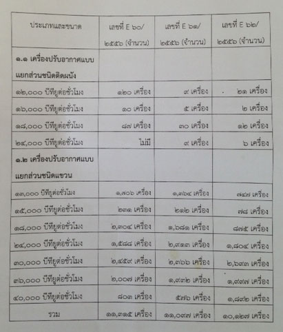 กรณี กรมพัฒนาพลังงานทดแทนและอนุรักษ์พลังงาน กระทรวงพลังงาน แจ้งยกเลิกประกาศประกวดราคาด้วยวิธีการอิเล็กทรอนิกส์โครงการส่งเสริมการอนุรักษ์พลังงานในอาคารภาครัฐ (ค่าสนับสนุนการปรับปรุงอุปกรณ์ประสิทธิภาพสูง) จัดซื้อเครื่องปรับอากาศและติดตั้งในอาคารภาครัฐ ตามประกาศประกวดราคา เลขที่ E60/2556,E61/2556,E62/2556 รวมจำนวน 32,539 เครื่อง วงเงินการจัดซื้อกว่า 1,198,353,800 บาท