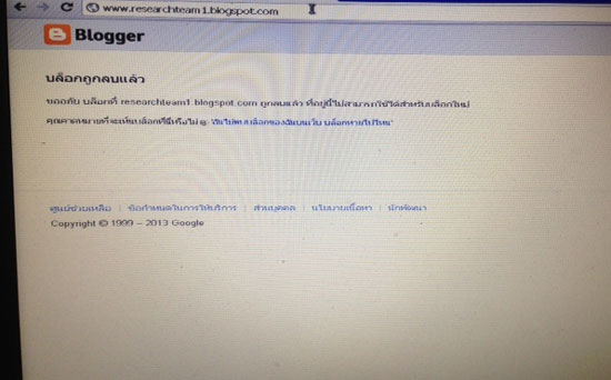 ผู้สื่อข่าวสำนักข่าวอิศรา www.isranews.org รายงานว่า เมื่อเวลา 17.20 น. วันที่ 2 พฤษภาคม 2556 ได้เข้าไปตรวจสอบข้อมูลในเว็บไซต์ทั้งสองแห่งอีกครั้ง ปรากฏว่าไม่สามารถเข้าไปดูข้อมูลได้ โดย www.researchteam1.blogspot.com ระบุว่า "บล็อกถูกลบแล้ว" "ขออภัย บล็อกที่ researchteam1.blogspot.com ถูกลบแล้ว ที่อยู่นี้ไม่สามารถใช้ได้สำหรับบล็อกใหม่"
