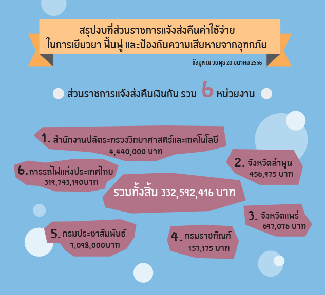 แจงละเอียด! ยอดใช้งบ 1.2 แสนล้านฟื้นฟู เยียวยาน้ำท่วม เหลือ 332 ล้าน (อินโฟกราฟิก)