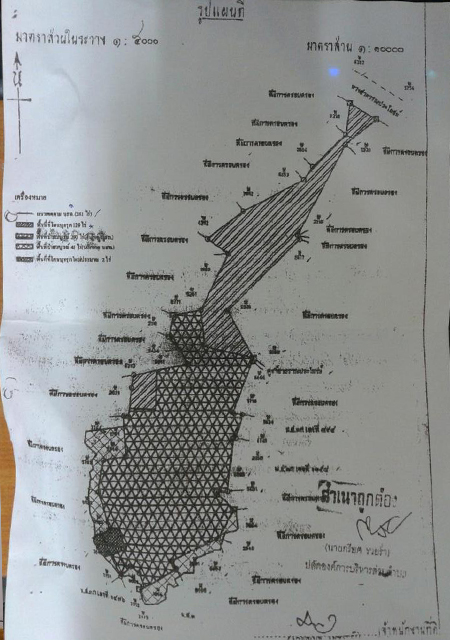 เเผนที่ป่าพรุคันธุลีในอดีต ร่างโดยอดีตผู้ใหญ่บ้านก่อนจะประกาศเป็นเขตอนุรักษ์