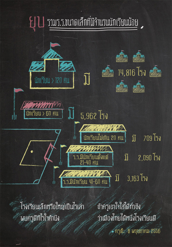 และในปี 2553 ระบุอยู่ใน "แผนปฏิรูปการศึกษารอบ 2" ระยะเวลา 10 ปี จาก 2553 - 2563 ของคณะกรรมการปฏิรูปการศึกษา ที่กำหนดไว้ว่าจะยุบโรงเรียนขนาดเล็ก 7,000 แห่ง ที่เป็นโรงเรียนด้อยคุณภาพ เพื่อให้การบริการจัดการทรัพยากรและงบประมาณด้านการศึกษามีประสิทธิภาพมากขึ้น และลดการกระจายงบประมาณ...