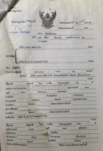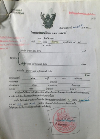 นอกจากนี้ บริเวณป้อมยามทางเข้าบริษัท ยังปรากฏหนังสือท้วงหนี้ และหมายศาล ที่ บริษัท จีเอสไอไทยแลนด์ จำกัด เข้าไปเกี่ยวข้องด้วยจำนวนมาก โดยเอกสารบางส่วนระบุว่า “เอกสารประกอบเรื่องการมอบอำนาจดำเนินคดีแพ่ง,คดีทางอาญาและหรือ คดีล้มละลาย กับ บจก. จีเอส ไอ ไทยแลนด์” และมีหลายคดีที่เกิดขึ้นตั้งแต่ปี 2554