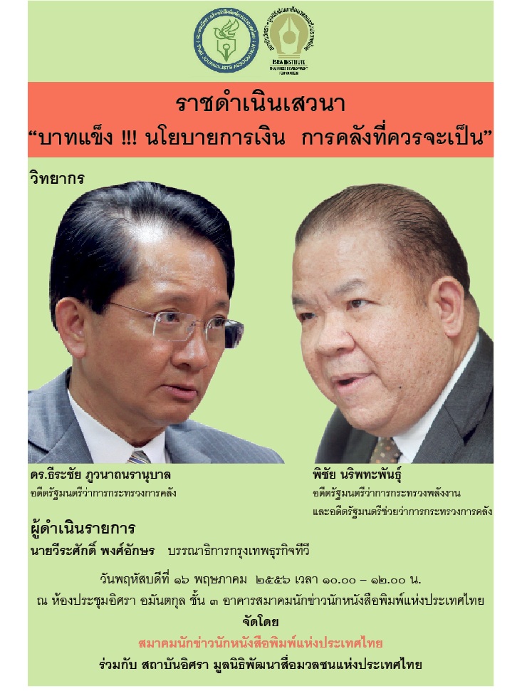 เชิญร่วมฟัง ราชดำเนินเสวนา "บาทแข็ง!!! นโยบายการเงิน การคลังที่ควรจะเป็น" 16พ.ค.นี้