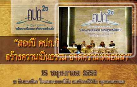 วันที่ 15 พ.ค. สำนักงานคณะกรรมการปฏิรูปกฎหมาย จัดสัมมนา "สองปี คปก.กับการปฏิรูปกฎหมาย สร้าความเป็นธรรม ขจัดความเหลื่อมล้ำ" ณ ห้องแคทลียา โรงแรมรามาการ์เด้น กรุงเทพฯ โดยมี ศ.บวรศักดิ์ อุวรรณโณ เลขาการสถาบันพระปกเกล้า ศ.วิทิต มันตาภรณ์ คณะนิติศาสตร์ จุฬาฯ นางจินตนา แก้วขาว ผู้แทนกลุ่มอนุรักษ์ธรรมชาติและสิ่งแวดล้อมบ้านกรูด และนายไพโรจน์ พลเพชร กรรมการปฏิรูปกฎหมาย ร่วมอภิปราย
