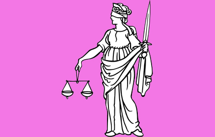 สัญลักษณ์ เทพียุติธรรม (Lady Justice) ของชาวโรมัน ใช้ผ้าปิดตา ไร้อคติใดๆ ต่อสายตาทางโลก มือข้างหนึ่งถือตาชั่ง ชั่งน้ำหนักความดีชั่วให้สมดุล มืออีกข้างถือดาบ มีคมสองด้าน นัยหนึ่งคือมีอำนาจในการพิพากษา แต่อีกนัยคือเตือนว่าถ้าใช้อำนาจพิพากษาไม่ถูกต้อง อาจทำร้ายผู้คนได้ทุกคน ไม่ว่าจะเป็นคนดีหรือคนเลว