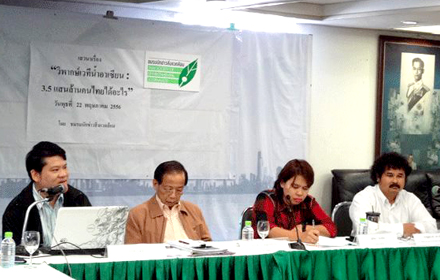 วันที่ 22 พ.ค. ชมรมนักข่าวสิ่งแวดล้อม สมาคมนักข่าวนักหนังสือพิมพ์แห่งประเทศไทย จัดเสวนา "วิพากษ์เวทีน้ำอาเซียน : 3.5 แสนล้าน คนไทยได้อะไร" ณ ห้องประชุมอิศรา อมันตกุล ชั้น 3 สมาคมนักข่าวฯ โดยมี นายปรเมศวร์ มินศิริ ตัวแทนจากเว็บไซต์ thaiflood นายประสาร มฤคพิทักษ์ สมาชิกวุฒิสภา และนายหาญณรงค์ เยาวเลิศ ประธานสมัชชาองค์กรเอกชนด้านสิ่งแวดล้อมและคุ้มครองทรัพยากรธรรมชาติ และประธานมูลนิธิเพื่อการบริหารจัดการน้ำแบบบูรณาการ (ประเทศไทย) ร่วมเสวนา