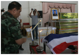 2 พล.ต.จำลอง คุณสงค์ รองแม่ทัพภาคที่ 4 เป็นประธานในพิธีรดน้ำศพ ส.ท.ผดุงพงษ์ สงอาจินต์ ทหารพรานที่ถูกคนร้ายลอบวางระเบิดจนเสียชีวิตที่ อ.รามัน จ.ยะลา ณ ฌาปนสถานเทศบาลนครยะลา