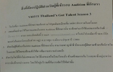สุดท้าย คุณแม่ได้นำหลักฐานการเข้าออดิชั่นในรายการไทยแลนด์ก๊อตฯ เพื่อยืนยันว่าไม่มีการเตี๊ยมหรือถูกชักชวนจากทางรายการแต่อย่างใด นั่นคือ ‘เอกสารผ่านเข้ารอบการแข่งขัน’ นั่นเอง .