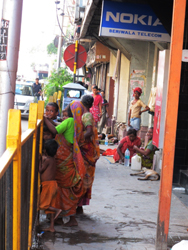 สิ่งที่ได้สัมผัสในโกลกัตตา นอกจากอากาศอันร้อนระอุและรถราติดหนึบยิ่งกว่ากรุงเทพฯแล้ว ก็คือความยากจนของผู้คน และชีวิตริมถนนของพวกไร้บ้าน เรียกว่าทั้งนั่งทั้งนอนกันเกลื่อนทางเท้ากันเลยทีเดียว ขอทานก็เยอะอย่างไม่น่าเชื่อ แถมยังมีรถลากที่ใช้ “คนลาก” ให้เห็นกันอีกต่างหาก