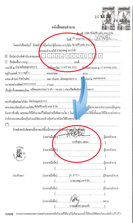 วันที่ 20 มิถุนายน 2554 นางสาวสายธารมอบอำนาจให้นายสุเทพ วุฒิพาณิชย์กุล ยื่นแก้ไขที่ตั้งสำนักงานใหญ่ จากอาคารที พาร์ค ชั้น 4 ห้อง 402 เป็น อาคารที พาร์ค ชั้น 4 ห้อง 404