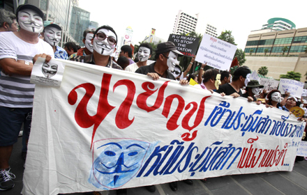 ทั้งนี้ ประชาชน 53.72% ระบุว่า “ไม่เห็นด้วย” กับการชุมนุมของกลุ่มหน้ากากขาว โดยให้เหตุผลอาทิ ทำให้ภาพลักษณ์ของประเทศเสียหาย สร้างความวุ่นวายในบ้านเมือง ผู้ที่ไม่เกี่ยวข้องอาจจะได้รับความเดือดร้อนด้วย เป็นการละเมิดสิทธิผู้อื่นด้วย ไม่อยากเห็นคนไทยขัดแย้งกันเอง ฯลฯ มีเพียง 32.99% ที่ระบุว่า “เห็นด้วย"