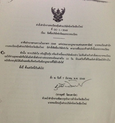 จากนั้น บริษัทฯ ไม่ได้มีการยื่นเรื่องขอเปลี่ยนแปลงอะไรต่อกรมพัฒนาธุรกิจอีก