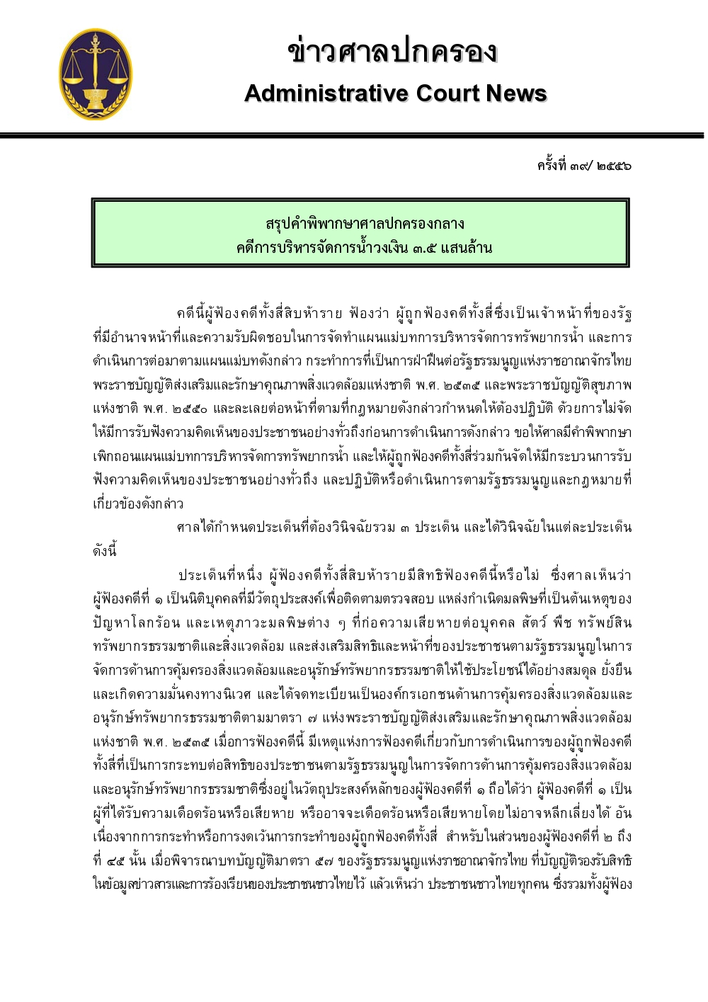 สรุปคำพิพากษาศาลปกครอง คดีการบริหารจัดการน้ำวงเงิน 3.5 แสนล้าน