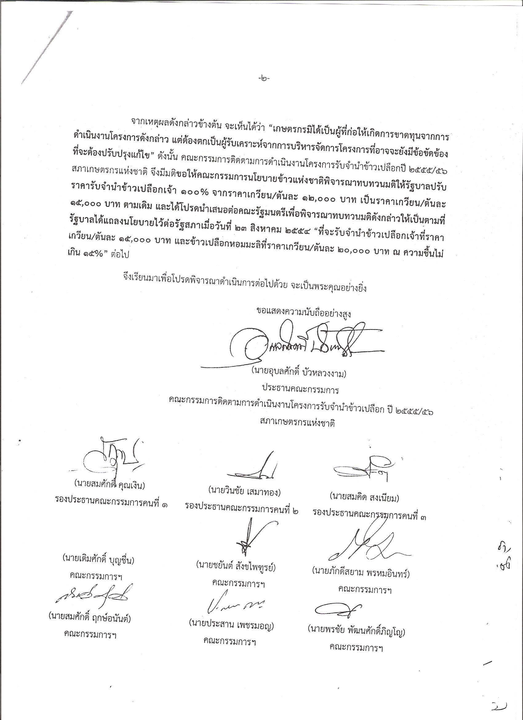 “เกษตรกรมิได้เป็นผู้ที่ก่อให้เกิดการขาดทุนจากการดำเนินโครงการดังกล่าว แต่ต้องตกเป็นผู้รับเคราะห์จากการบริหารจัดการโครงการที่อาจจะยังมีข้อขัดข้องต้องปรับปรุงแก้ไข” ประธานคณะกรรมการฯ กล่าว