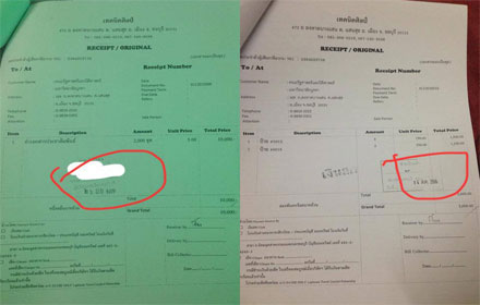 ทั้งที่ ร้านของตนเองไม่เคยได้รับการว่าจ้างงานดังกล่าวเกิดขึ้น และรูปแบบใบเสร็จที่นำไปใช้ก็ไม่ได้เป็นแบบฟอร์มของทางร้าน