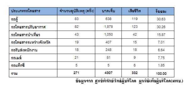 ภาพรวมอุบัติเหตุรถโดยสารสาธารณะ ตั้งแต่เดือน ตุลาคม 2554 – มิถุนายน 2556
