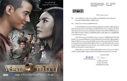 “จีทีเอช” ร่อนหนังสือเตือน เว็บหนังเถื่อน ระงับแพร่ภาพ "พี่มาก..พระโขนง” ด่วน!!