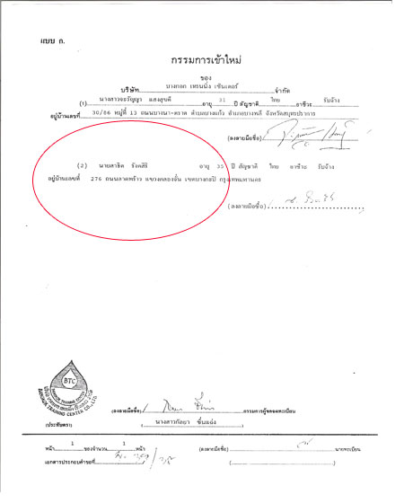 ครั้งล่าสุด 15 ก.ย.2549 ที่ตั้งเลขที่ 95/3 ซอยลาดพร้าว 71 ถนนนาคนิวาส แขวงลาดพร้าว เขตลาดพร้าว กรุงเทพฯ (ต่อมาเลขที่บ้านดังกล่าวถูกกรุงเทพมหานครเปลี่ยนเป็นเลขที่ 168/3 ซอยลาดพร้าว 71 ถนนนาคนิวาส แขวงลาดพร้าว)