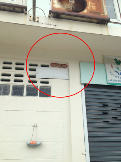 และพบว่าเป็นทาวเฮ้าส์ 2 ชั้น ขนาดไม่ใหญ่โตมาก สภาพถูกดัดแปลง เป็นสำนักงานบริษัท ประตูเหล็กถูกล๊อคด้วยลูกกุญแจ ด้านหน้าไม่มีป้ายชื่อบริษัท