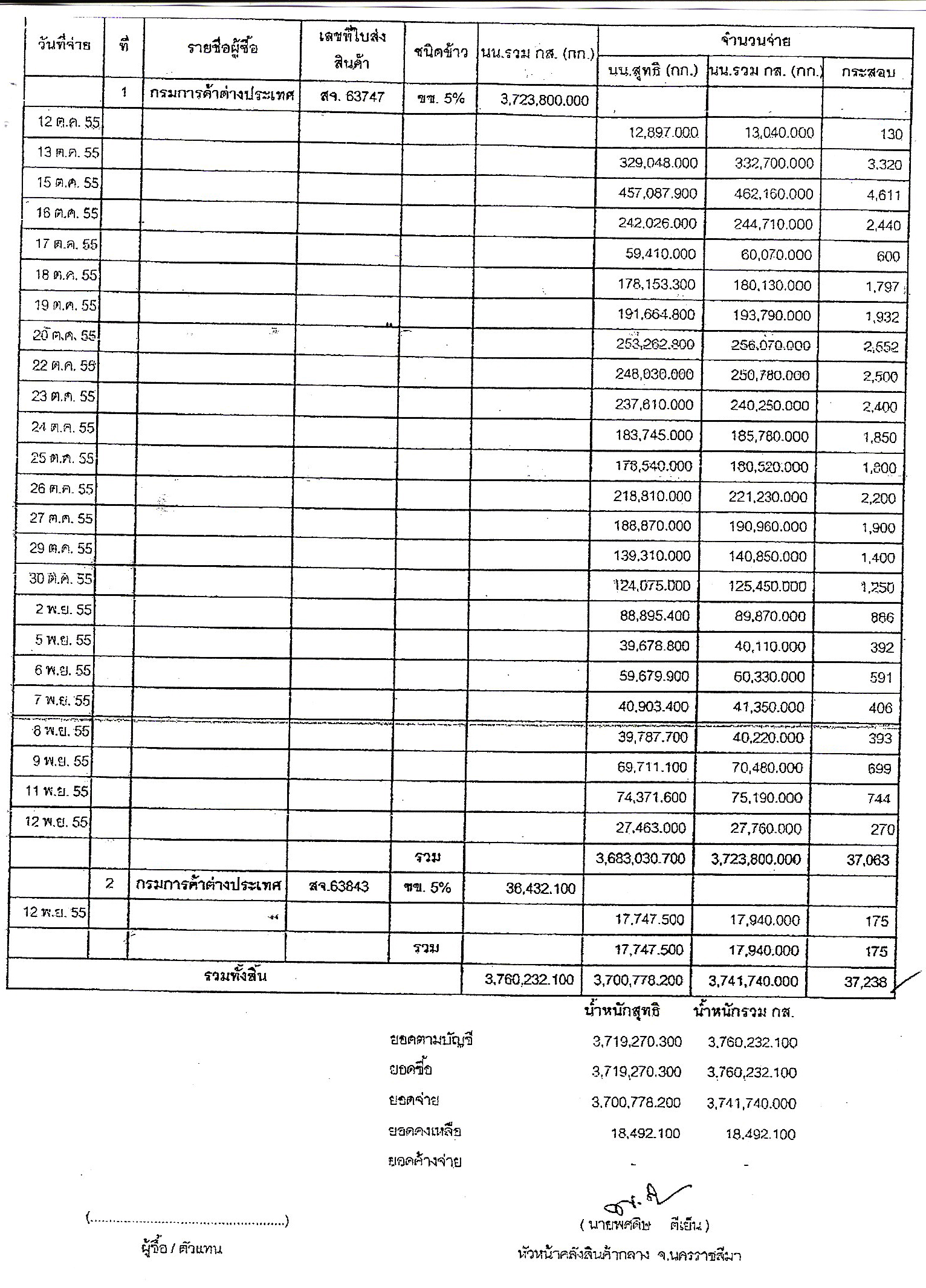 ทั้งนี้ การรับมอบข้าวแต่ละครั้ง ผู้ซื้อจะชำระเงินค่าข้าวก่อนขนย้าย ตามปริมาณการขนย้าย จากการทยอยรับมอบดังกล่าวทำให้อาจมีปริมาณสุดท้ายคงเหลือเป็นปริมาณไม่กี่ตัน หรือเพียงไม่กี่กระสอบ