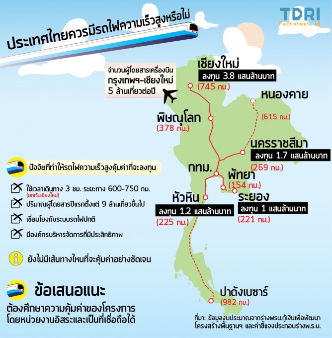 TDRI ออก Factsheet ชี้ชัด ยังไม่มีเส้นทางไหน "คุ้มค่า" ลงทุนสร้างรถไฟความเร็วสูง