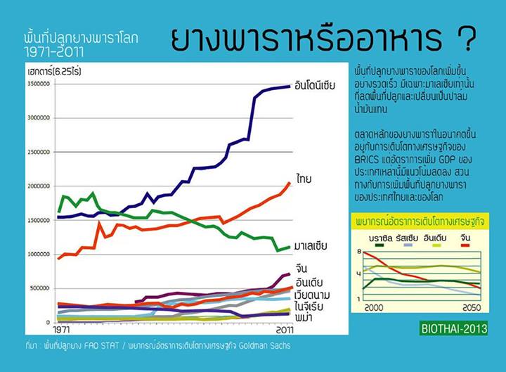 ผู้สื่อข่าวรายงานว่า มูลนิธิชีววิถี (ไบโอไทย) เผยแพร่ภาพข้อมูลวิเคราะห์ปัญหายางพารา โดยระบุว่า