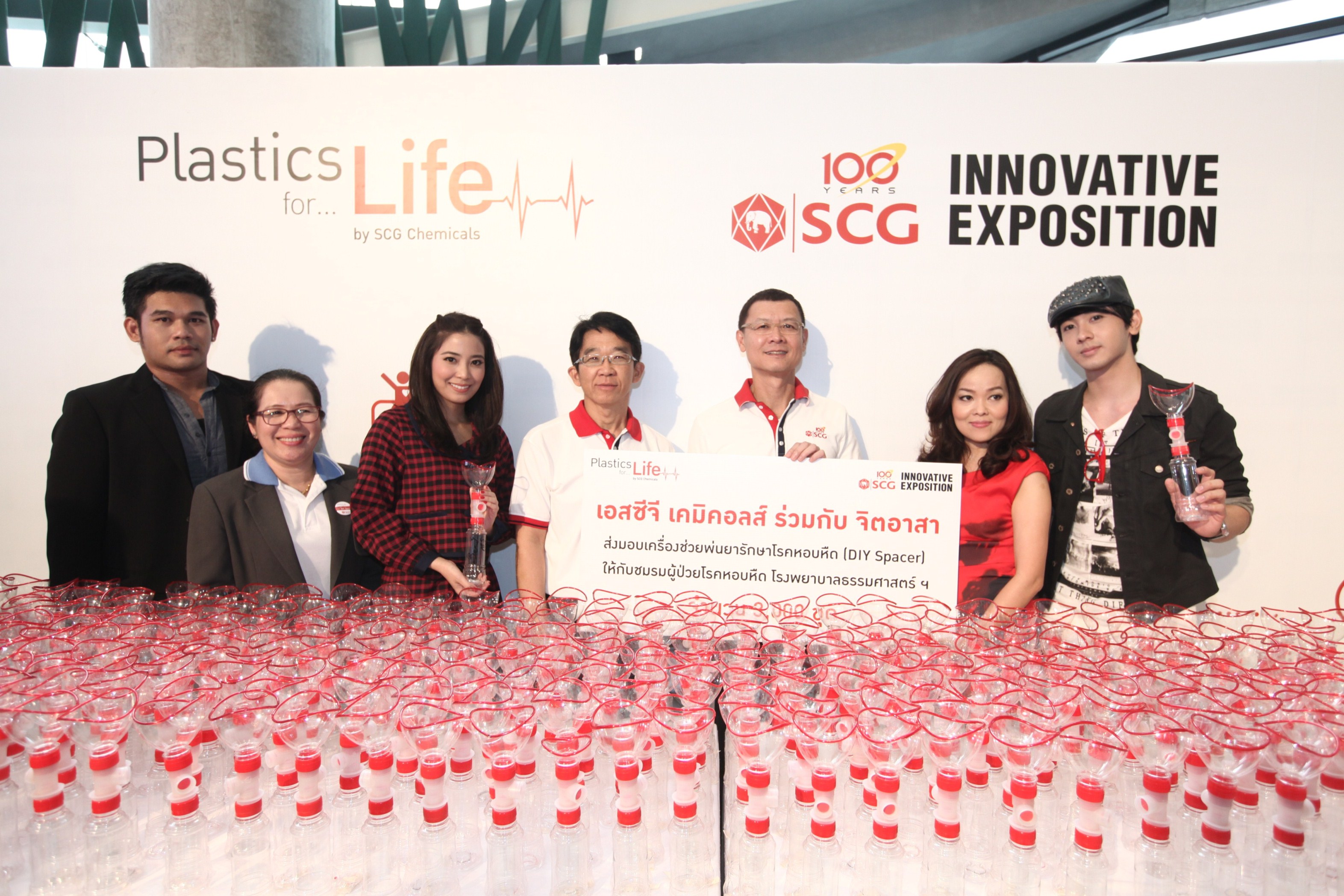 จัดกิจกรรมเวิร์คช็อป DIY Spacer ระดมพลังจิตอาสาทำเครื่องพ่นยาสำหรับผู้ป่วยโรคหอบหืดในงาน ”Plastics for Life by SCG Chemicals” ส่งมอบให้กับชมรมผู้ป่วยโรคหืด โรงพยาบาลธรรมศาสตร์เฉลิมพระเกียรติ จำนวน 3,000 ชุด เพื่อเติมเต็มความสุขและส่งต่อสุขภาพที่ดีให้กับผู้ป่วยโรคหอบหืดที่ขาดแคลนทั่วประเทศ โดยมีศิลปินเอเอฟ ณัฏฐ์ ทิวไผ่งาม (เอเอฟ 5) และโบว์ สาวิตรี สุทธิชานนท์ (เอเอฟ 5) ร่วมกิจกรรมกับชาวจิตอาสา