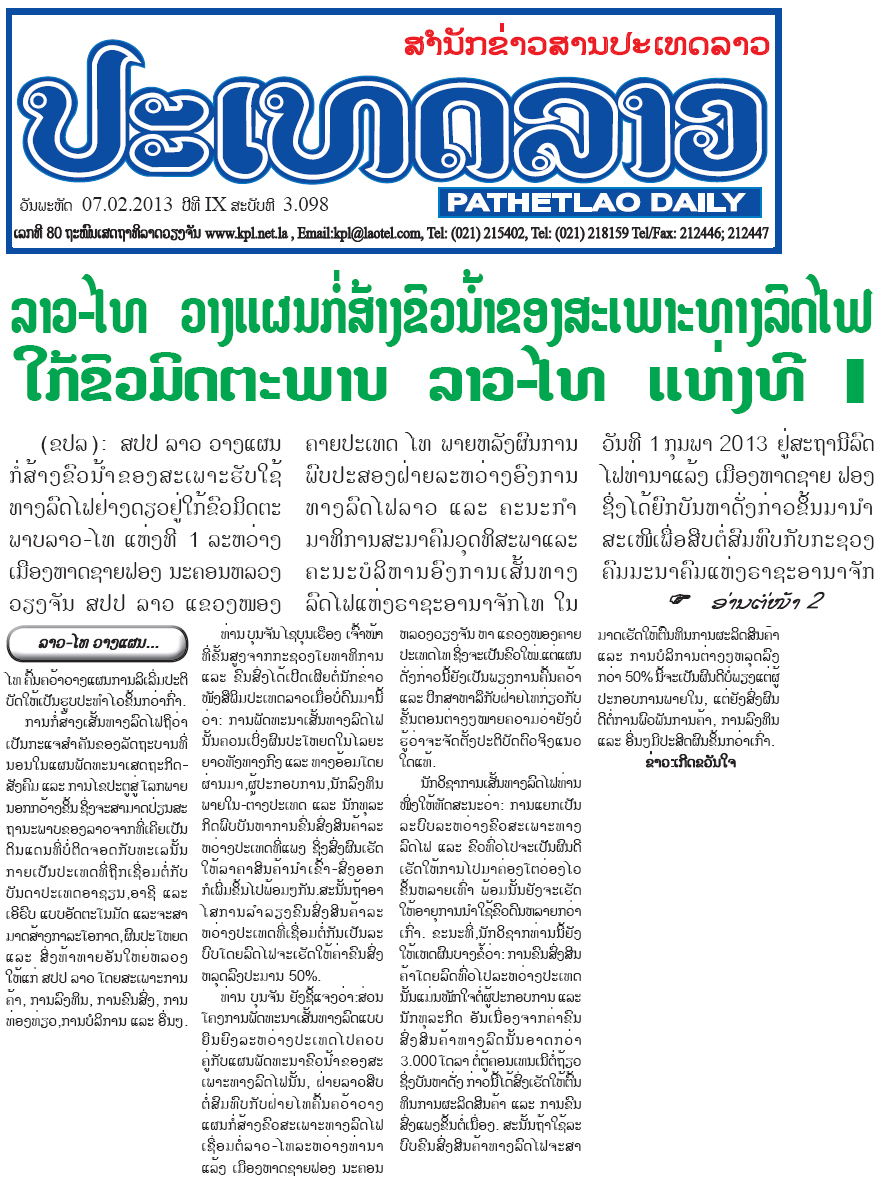 "...แต่สิ่งที่น่าสนใจ คือคนที่นี่ (คนลาว) มักนิยามรับและเสพข่าวสารส่วนใหญ่จากไทย โดยจะรับสัญญาณจากไทยโดยตรง ไม่เพียงแค่ข่าวเท่านั้น ในสภากาแฟของเขา จะพูดถึงการเมืองไทย ไม่ว่าจะทักษิณ ชินวัตร อภิสิทธิ์ เวชชาชีวะ อีกทั้งยังมีการแบ่งเป็นฝ่ายเสื้อเหลือง-เสื้อแดง อย่างตอนเหตุการณ์ นปช.ชุมนุมปี 2552-2553 คนลาวก็ก็ให้ความสนใจมาก แล้วนำมาเปรียบเทียบกับบ้านเขา แล้วคิดว่าดีแล้วที่บ้านเขาเป็นแบบนี้ อยู่กันแบบนี้ไปเถอะ ถึงไม่มีปากไม่มีเสียง...”
