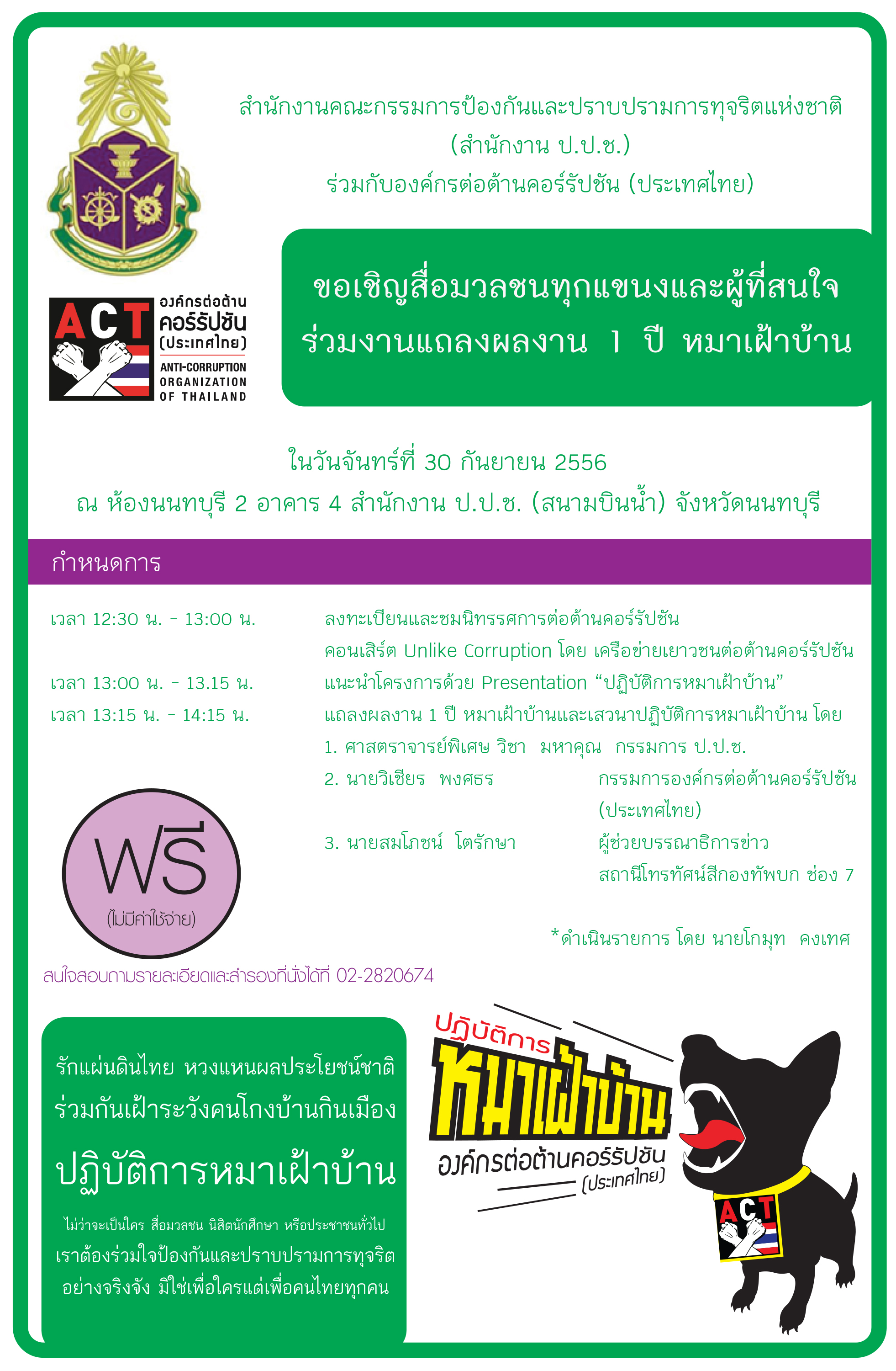 เชิญร่วมงานแถลงผลงาน 1 ปี "หมาเฝ้าบ้าน" 30 ก.ย.นี้