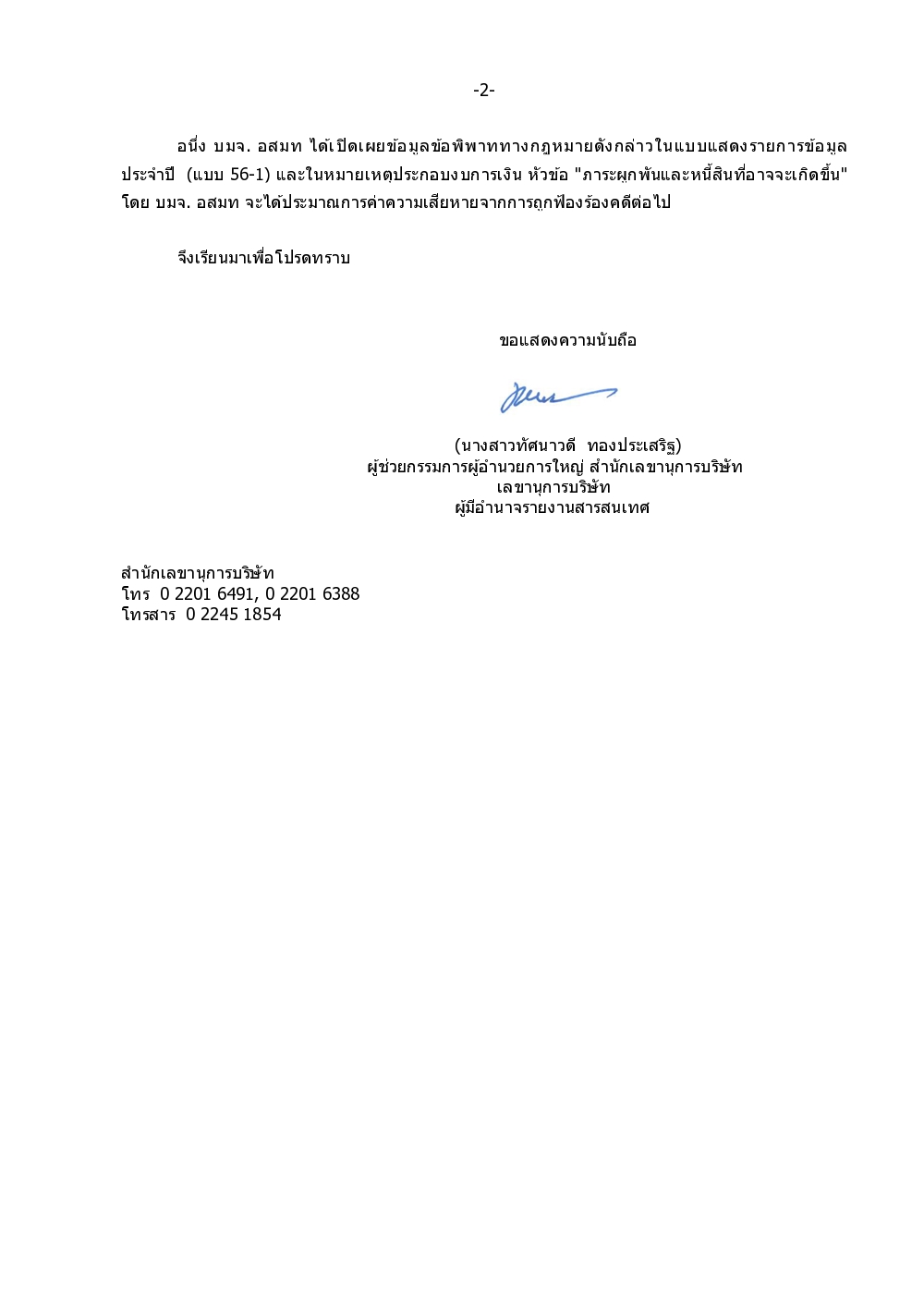 วันที่ 26 กันยายน นางสาวทัศนาวดี ทองประเสริฐ ผู้ช่วยกรรมการผู้อานวยการใหญ่ สำนักเลขานุการบริษัท อสมท จำกัด (มหาชน) แจ้งตลาดหลักทรัพย์แห่งประเทศไทย ตามที่บริษัทไร่ส้มฟ้องคดีปกครอง บมจ.อสมท คดีพิพาทเกี่ยวกับสัญญาทางปกครอง เมื่อวันที่ 25 กรกฎาคม 2551 เรียกให้ชำระเงิน 253 ล้านบาท พร้อมดอกเบี้ยในอัตราร้อยละ 7.5 ต่อปี ของต้นเงินจำนวน 215 ล้านบาท นับถัดจากวันฟ้องเป็นต้นไปจนกว่าจะชำระเสร็จ นั้น
