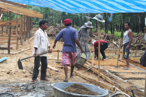 จึงเป็นที่มาที่ทำให้ชาวคลองแห้งพยายามลุกขึ้นยืนด้วยขาของตนเอง โดยประสานความร่วมมือไปยังเครือข่ายต่างๆ จนในที่สุดป่าไม้จังหวัดยินยอมให้เข้าใช้พื้นที่สร้างเป็นบ้านพักชั่วคราว ชาวบ้านระดมทุนหาไม้มาสร้าง ใช้แรงงานหลังเลิกงานมาช่วยกัน ตอนนี้ได้โครงบ้านเงินมาหมดเสียก่อน ถึงกระนั้นก็ไม่ย่อท้อ ค่อยๆ พยายามทำไป