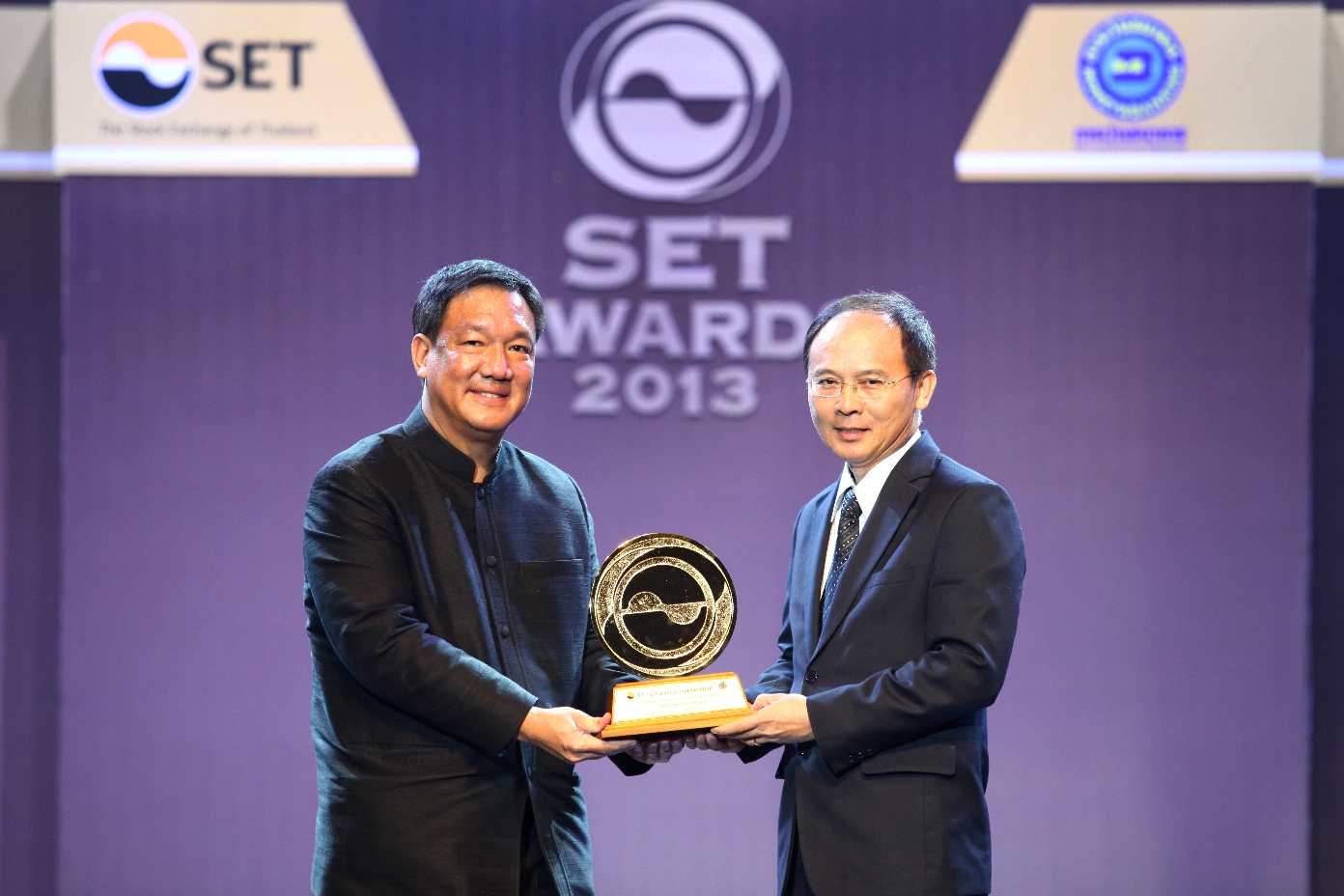 นายธนวงษ์ อารีรัชชกุล (ขวา) ผู้ช่วยผู้จัดการใหญ่-การบริหารกลาง เอสซีจี รับรางวัลเกียรติยศ แห่งความสำเร็จ (SET Award of Honor) ด้านความรับผิดชอบต่อสังคม จากนายกิตติรัตน์ ณ ระนอง (ซ้าย) รองนายกรัฐมนตรีและรัฐมนตรีว่าการกระทรวงการคลัง จากงานประกาศผลรางวัล SET Awards 2013 ซึ่งจัดขึ้นโดยตลาดหลักทรัพย์แห่งประเทศไทยและวารสารการเงินธนาคาร ซึ่งเป็นรางวัลที่มอบให้กับบริษัทจดทะเบียนในตลาดหลักทรัพย์ที่ได้รับรางวัลด้านความรับผิดชอบต่อสังคมยอดเยี่ยม (Best Corporate Social Responsibility Awards) ต่อเนื่อง 6 ปีซ้อน ตั้งแต่ปี พ.ศ. 2551สะท้อนการดำเนินธุรกิจของเอสซีจีที่ยึดมั่นในความรับผิดชอบต่อสังคมและสิ่งแวดล้อม ภายใต้หลักบรรษัทภิบาล ตามแนวทางการพัฒนาอย่างยั่งยืน เพื่อสร้างความเติบโตอย่างมั่นคงและยั่งยืนให้กับธุรกิจ สังคม และประเทศชาติ