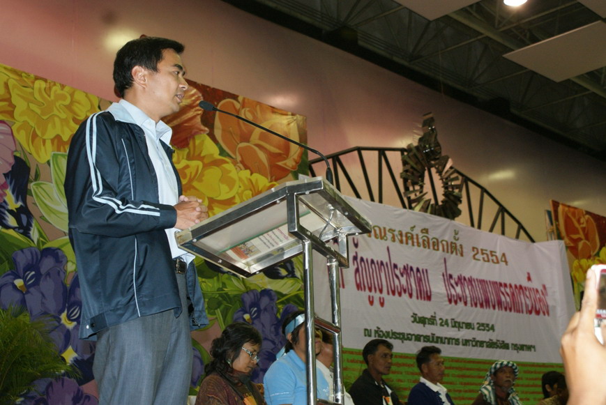 วันที่ 24 มิ.ย. 54 เครือข่ายภาคประชาชนกว่า 40 องค์กร จัดโครงการรณรงค์เลือกตั้ง 2554 “เวทีสัญญาประชาคม ประชาชนพบนักการเมือง” ที่มหาวิทยาลัยรังสิต มีนักศึกษา ประชาชน นักวิชาการ และนักพัฒนาเอกชน เข้าร่วมกว่า 3,000 คน มีการอภิปรายวิชาการเรื่อง “วิพากษ์นโยบายพรรคการเมืองกับการแก้ปัญหาของประชาชน”