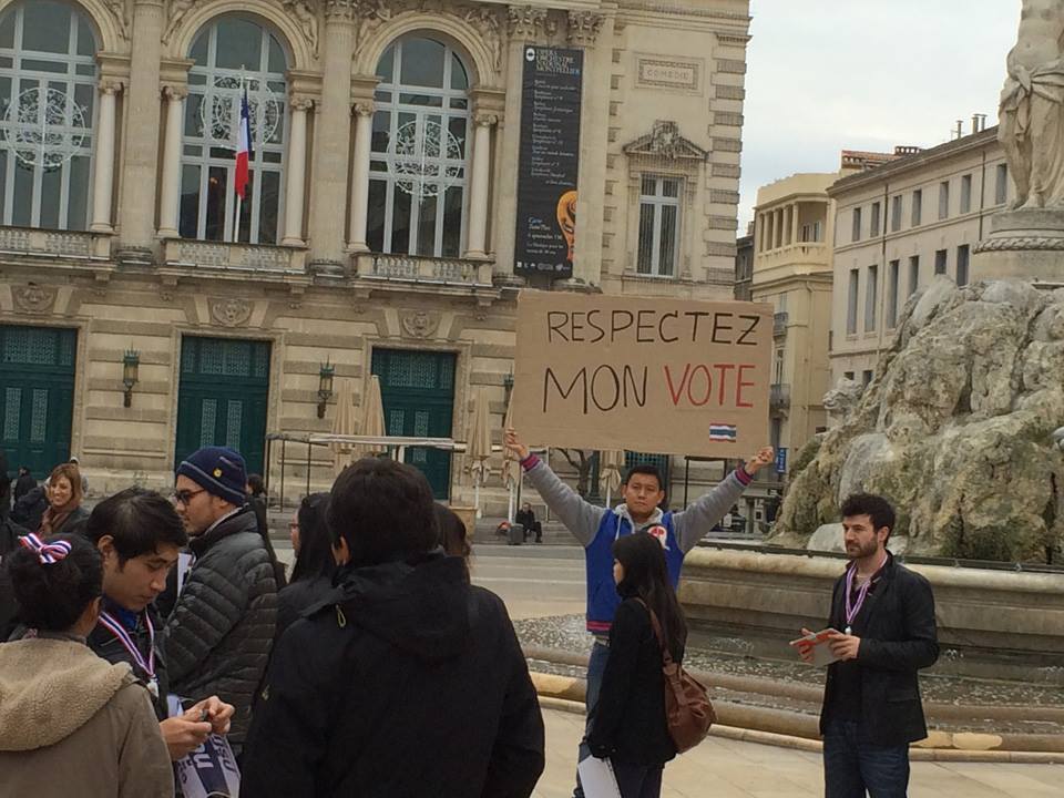 เปิดตัวหนุ่มชูป้าย “Respect Mon Vote” ประท้วง กปปส. ในฝรั่งเศส แท้ที่ ดารานำ ภาพยนต์เรื่องสัตว์ประหลาด “ เจ้ย- อภิชาติพงศ์”