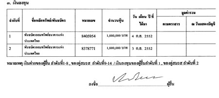 จำนวนหุ้น 1 ล้านบาท ถูกระบุว่าได้รับมาวันที่ 4 ก.ย. 2552 และ วันที่ 3 ก.ย.2552