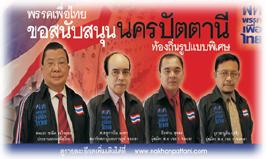บรรยายภาพ : ป้ายหาเสียงชูนโยบาย "นครปัตตานี" ของพรรคเพื่อไทย