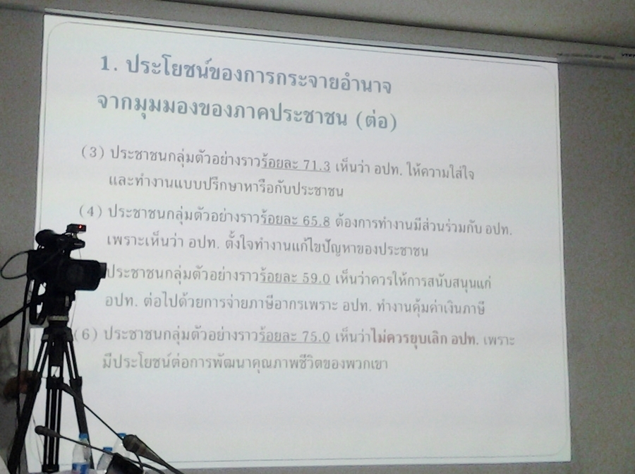 ข้อมูลดังกล่าวประจักษ์ชัดว่า ภาคส่วนต่างๆ ที่รับบริการ เขาคิดอย่างไรกับท้องถิ่น ซึ่งจะตอบโจทย์ขั้นแรกของการกระจายอำนาจได้พอสมควร