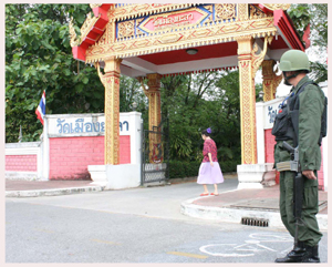 1 เจ้าหน้าที่ทหารเข้าประจำจุดรักษาความปลอดภัยรอบบริเวณวัดทั่วทั้งสามจังหวัดชายแดนภาคใต้ในช่วงวันอาสาฬหบูชาและเทศกาลเข้าพรรษา
