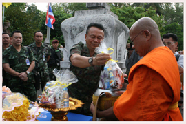 2 พล.ท.อุดมชัย ธรรมสาโรรัชต์ แม่ทัพภาคที่ 4 ร่วมพิธีทำบุญตักบาตร