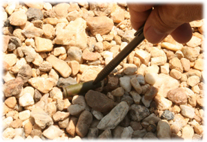 1 ปลอกกระสุนอาวุธสงครามที่เจ้าหน้าที่เก็บได้บริเวณจุดเกิดเหตุคนร้ายยิงถล่มพ่อค้ารับซื้อเศษยางและน้ำยางพารา ในท้องที่ อ.รามัน จ.ยะลา