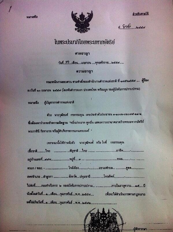ศาลอาญาอนุมัติหมายจับ 'โกตี๋' ข้อหาหมิ่นสถาบันเบื้องสูง ตามประมวลกฎหมายอาญา มาตรา 112