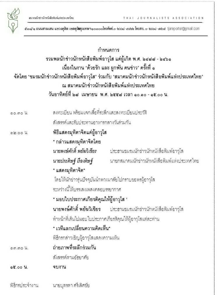 27 เม.ย. รวมพลนักข่าวอาวุโส แด่ผู้เกิดพ.ศ.2477-2461