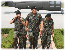 2 พล.อ.ประยุทธ์ จันทร์โอชา ผู้บัญชาการทหารบก ขณะลงจากเฮลิคอปเตอร์เข้าประชุมกับผู้บัญชาการกองกำลังที่ค่ายสิรินธร