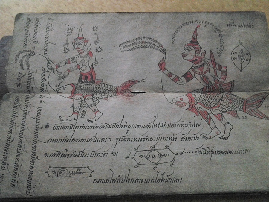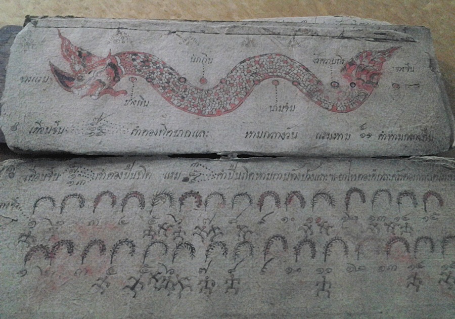เนื้อหาภายในเขียนบันทึกด้วยภาษาใต้ มีภาพ พ่อโพสพ แม่โพสพ ประกอบ